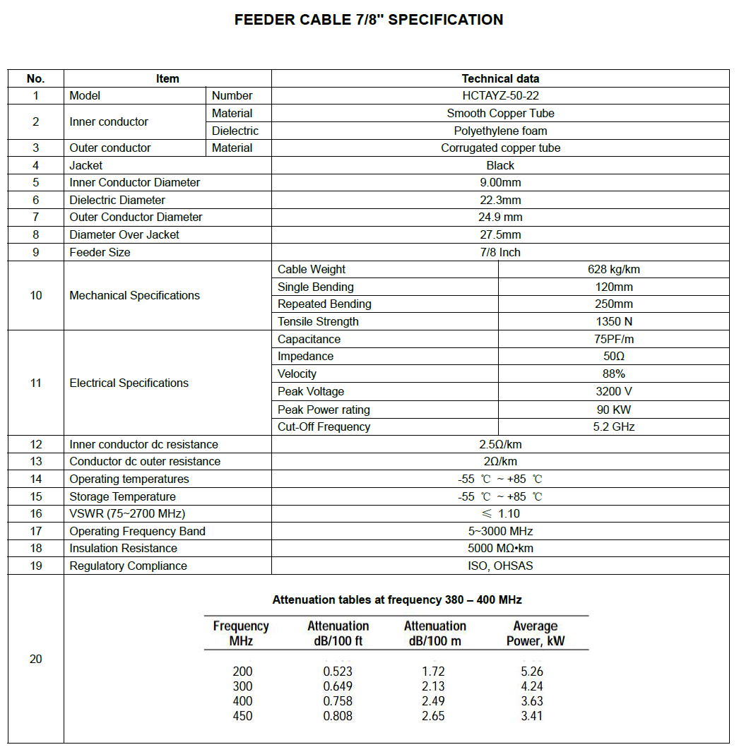 7/8 Inch Feeder Cable